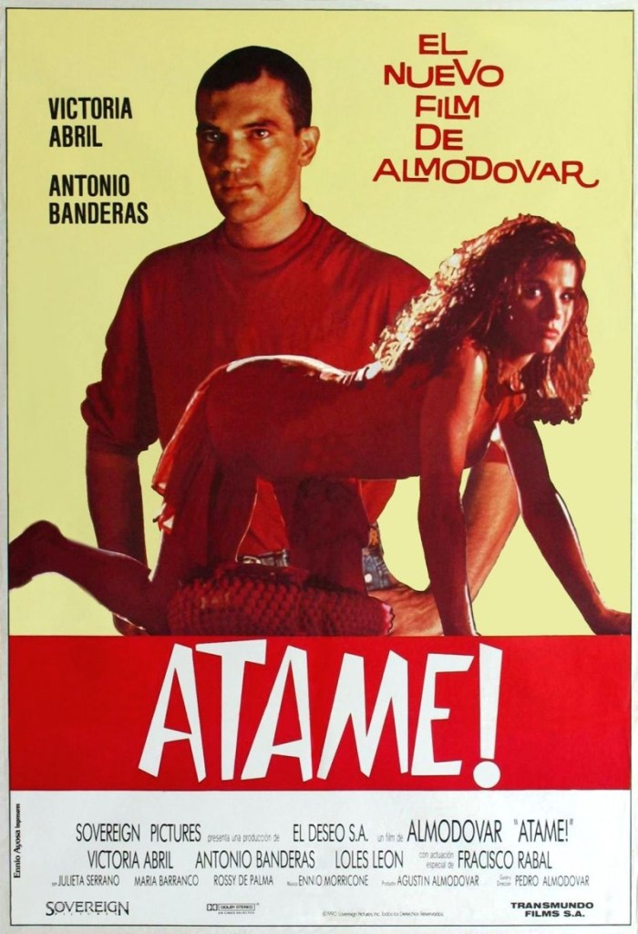 Prefiro analisar a modificação temática ocorrida nos mais de três decênios que separam as películas como a possibilidade de conquista de um amor mais livre e mais justo. O filme dos anos 60 nos mostra que o inconsciente social recém despertava para a necessidade de uma maior liberdade para as mulheres, mas não traçava um horizonte mais claro pela impossibilidade de compreensão das alternativas que produziriam tal revolução. O resultado só poderia ser sombrio e lúgubre. As mulheres ainda estavam numa total subserviência ao controle patriarcal, mas o romance de Freddie e Miranda em “O Colecionador” apontava para a ideia de que, se não lhes fosse oferecida a possibilidade de escolha, o resultado para a sociedade só poderia ser funesto. Em “Ata-Me!”, Almodóvar acena com a redenção: o protagonismo conquistado, e só ele, como capaz de reverter a submissão humilhante e degradante. Marina desperta seu desejo e, na cama, como metáfora de sua opção, troca de posição com Ricky. Sobre o corpo de seu amante, acena com a subversão da dominação, impondo sobre a violência a vitória imperiosa dos seus desejos e direitos. Ali se estabelece a mudança, o corte profundo, a guinada em direção ao “amor conquistado”, em substituição ao “amor imposto”.