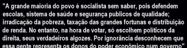 Este depoimento, do comediante liberal americano Bill Mahler, resume de uma maneira clara o que penso dos pobres brasileiros que votam em ricos, ou em seus representantes. É desta forma que analiso os meus amigos que fazem elogios rasgados ao presidente Macri e sua agenda neoliberal, ao mesmo tempo em que criticam os governos ligados aos trabalhadores. O que me deixa intrigado é que, se eles estivessem defendendo seus próprios privilégios, seria compreensível. Egoístico, mas racional. Entretanto, meus amigos deles defendem o enriquecimento sem freios dos seus próprios opressores, apenas por nutrirem a fantasia de que um dia, se a sorte lhes sorrir, poderão beber da mesma champanhe daqueles que hoje os oprimem. Muitos sequer querem acabam com o opressão; apenas invejam a opulência dos poderosos e dela querem usufruir.
