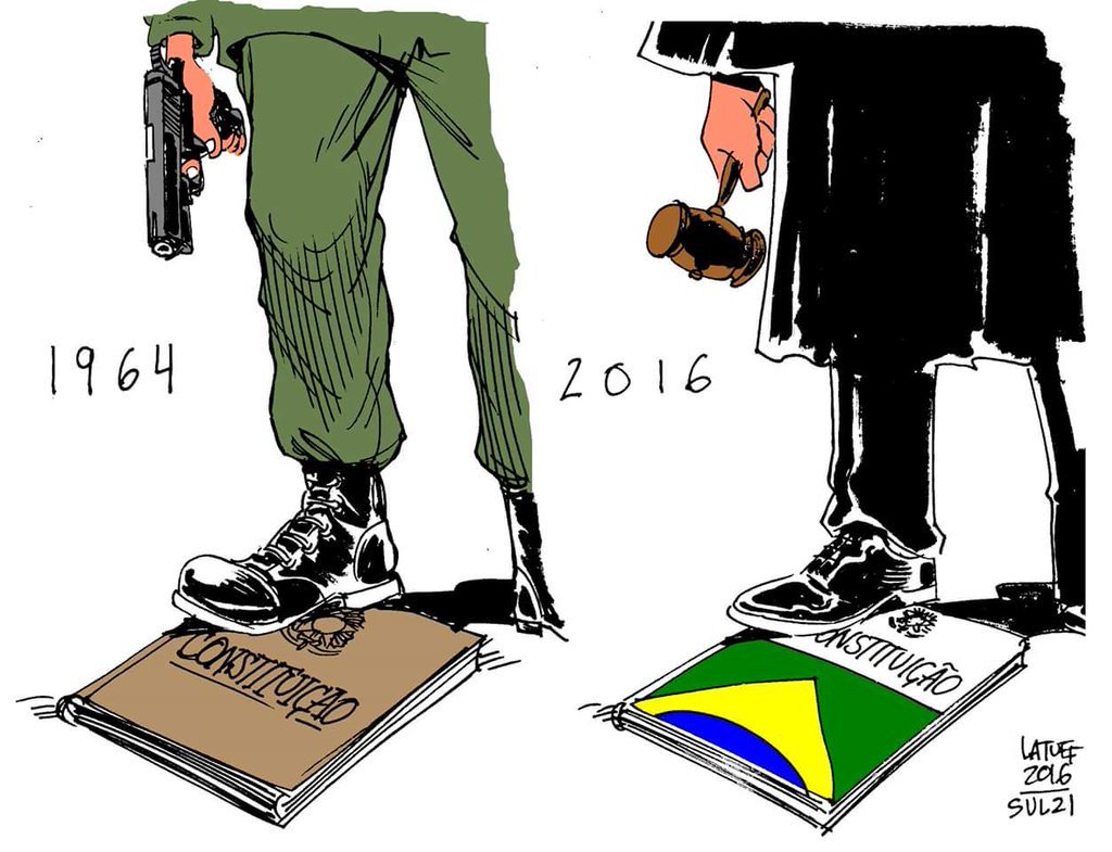O GOLPE contra a democracia foi político, jurídico e MIDIÁTICO. Teve a participação MACIÇA da MÍDIA fazendo uma fantástica propaganda contra Dilma e o PT exatamente porque eles se contrapunham aos LADRÕES famintos da política nacional. E vocês da DIREITA caíram como PATOS – aliás, o símbolo da FIESP era para vocês – porque o GOLPE recolocou os donos em seus devidos lugares. Agora não se investiga mais nada, PF está amordaçada, o juiz Moro pede a “comunhão nacional e o desarmamento dos espíritos”, Aécio está livre das acusações, Cunha será perdoado, e as raposas tem a chave do galinheiro.