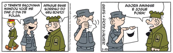 Quem é mais velho lembra do “Recruta Zero” e o personagem “Tenente Escovinha”, ambos do desenhista americano Mart Walker, que ironizava a organização militar do exército do Império americano. Pois o tenente Escovinha era tratado como um oficial a quem ninguém dava bola por ser muito novo e sem experiência. Enquanto isso, o “Sargento Tainha” era o sujeito com voz autoritativa para o grupo de recrutas, entre eles o engraçadíssimo e fanfarrão “Beatle Bailey”- o Recruta Zero.