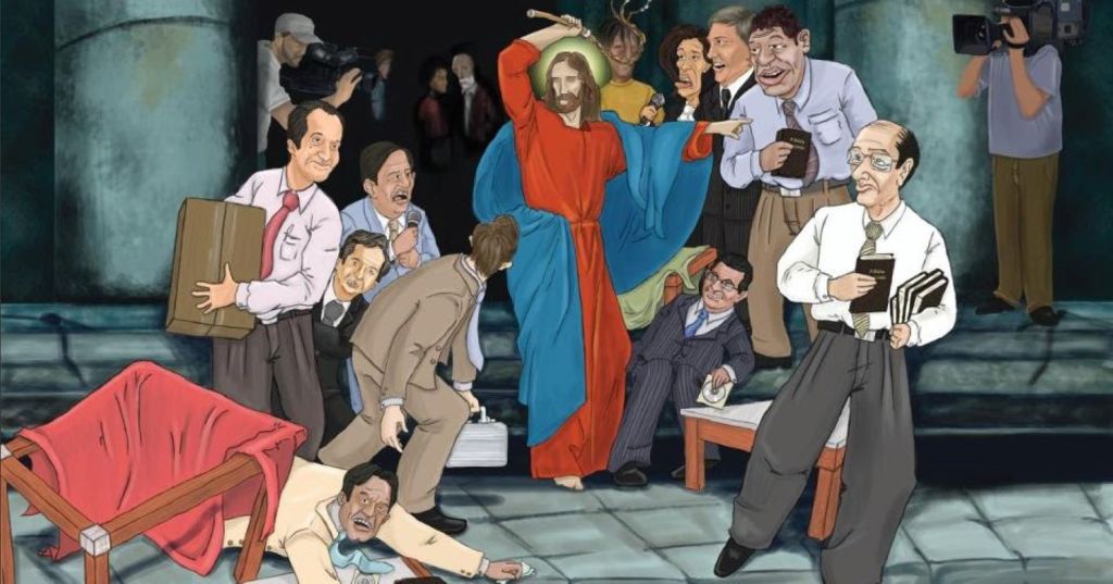 Esta é uma questão complexa, mas acredito que religião destes sujeitos é um culto às aparências. O cristianismo deles é de “forma“, quase nada de “conteúdo“. Trata-se de uma fé cristã identitária, que busca conectar-se com uma pretensa herança branca e europeia, que deseja se destacar da “barbárie” indígena ou africana, e que nada tem a ver com os valores da solidariedade, do amor ao próximo, do perdão e da comunhão. Um cristianismo branco e europeu, sem Cristo, sem bem-aventuranças, sem povo, sem os pobres, sem os desvalidos, sem a moral e sem os valores do Evangelho. Reverenciam um Jesus de arma na cintura, fiéis invadindo igrejas, atacando os padres, bebendo e cuspindo impropérios contra os semelhantes. O Império do ódio e do ressentimento, em todos os sentidos o oposto daquilo que o cristianismo pretendia trazer como “boa nova” para este mundo