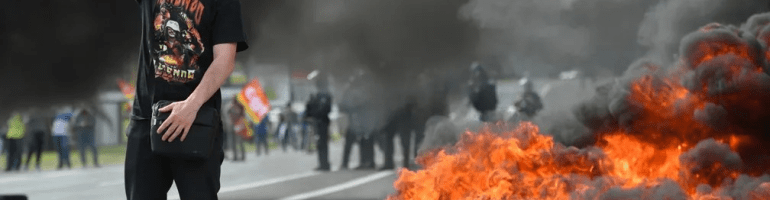 Cara…. eu vejo as manifestações na Europa, onde os cidadãos que protestam jogam coquetéis Molotov sobre os policiais fortemente armados, e fico imaginando como será a revolução proletária dos Estados Unidos, que vai ocorrer quando os 99% da população americana explorada se der conta que os governos burgueses que os controlam há séculos oferecem à classe trabalhadora apenas as migalhas do que arrecadam, gastando a maior parte na máquina de guerra e em benefício próprio. Os combates não vão ocorrer com os inocentes coquetéis dos civilizados sindicalistas franceses, ou os pedregulhos dos sofisticados ingleses, mas com AK47, pistolas, rifles de assalto e até tanques, carregadas por massas de brutamontes e “proud boys” cheios de ódio e Whey nas veias. Se alguém souber em qual canal vai passar, favor avisar…