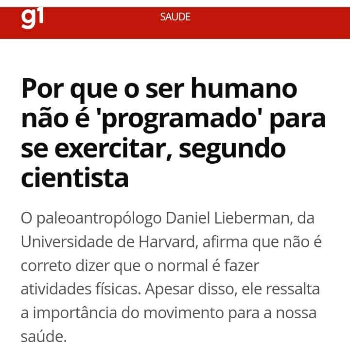 “Porque o ser humano não é programado para se exercitar, segundo cientista”.