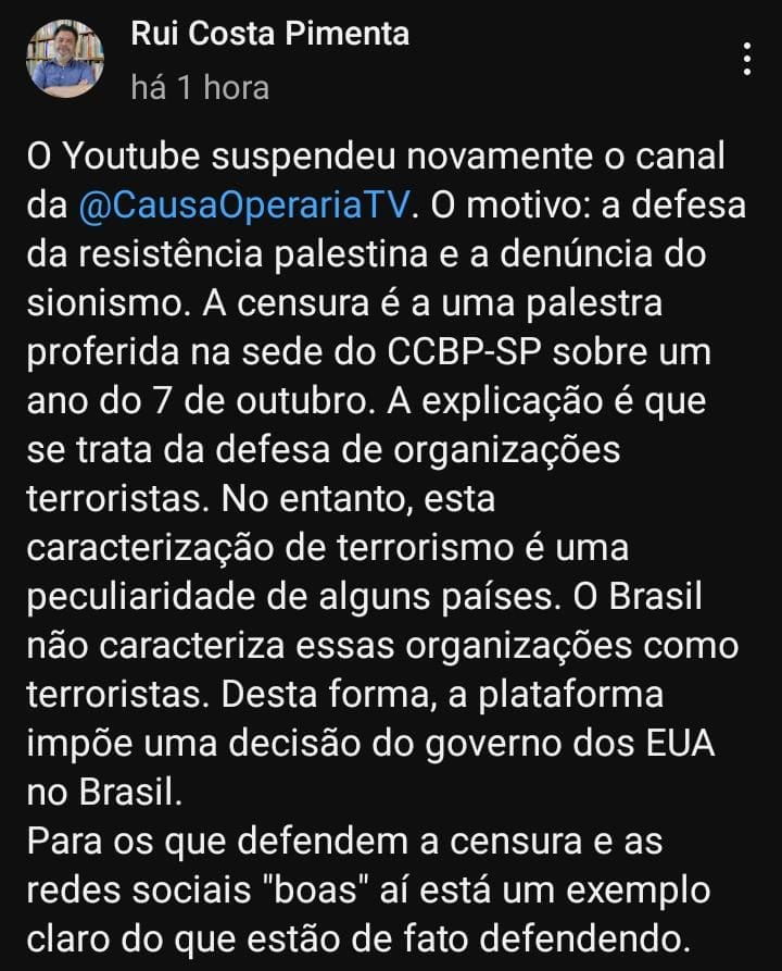 Portanto, essa crítica ao “terrorismo” do Hamas – como se o Estado de Israel não fosse uma entidade ilegal e terrorista por excelência – é tosca e historicamente injusta, além de ser mentirosa, mas apenas sobreviveu por tantos anos porque existe um controle imenso sobre a imprensa internacional. Os mesmos jornais que acusam a Rússia de ser “anti-LGBT”, ter invadido a Ucrânia sem razão, ou que chamam Maduro e Xi Jinping de “ditadores” acusam os guerreiros que lutam pela liberdade da palestina de terroristas, sem mencionar o terror de Estado que é praticado pela potência de ocupação há mais de 7 décadas. Esqueceram de noticiar o que agora é conhecimento oficial: a maior parte das mortes no ataque de 7 de outubro 2023 foram causadas pelos helicópteros israelenses, usando a “Diretiva Aníbal”. E as mortes causadas pelo Hamas – que por certo ocorreram – foram atos de resistência à uma opressão obscena e continuada, violenta e indigna. Agiram a exemplo dos “freedom fighters” da Argélia, da Resistência Francesa, dos Vietcongs, dos russos em Leningrado e dos coreanos na ocupação japonesa e americana. Em verdade, “Terrorismo” é a forma como os opressores chamam aqueles que resistem aos seus abusos, mas eles são os guerreiros da liberdade do seu povo, e usam as ferramentas possíveis para empreender esta luta.