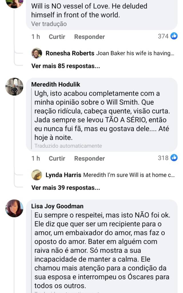 Eu acho que um artista tem a obrigação de manter a compostura, e a ação destemperada e infantil de Will Smith foi absurda. Agredir um comediante é uma grosseria que nem os Reis mais despóticos fariam com seus menestréis – contratados exatamente para isso, humanizar a figura do Rei. Artistas precisam suportar essa carga exatamente por serem pessoas públicas. Por outro lado, o tapa expôs seu descontrole e sua falta de postura. Em situações como essa, “Noblesse oblige”, diria meu pai. Um ator precisa saber que um Oscar não é um boteco onde diferenças pessoais podem ser tratadas publicamente na frente de 1 bilhão de espectadores. Para mim foi uma imensa chinelagem. Um comediante tem a delegação cultural de fazer troça de todo mundo – de tudo e de todos. É sua obrigação, é o seu papel social, e criar guetos ou espaços de blindagem para grupos ou condições é desumano e cruel com estes próprios grupos, pois assevera sua fragilidade e incompetência. Ficar irritadinho é absurdo e careta, um machismo anacrônico e tolo. Infelizmente eu acredito que aqui no Brasil ele seria aplaudido – até pela esquerda – pois a maioria das pessoas acha essa atitude bonita, nobre e romântica. Aqui no Brasil, a coisa é diferente. Agora mesmo vi o post dizendo que “é inaceitável fazer piadas com aquela mulher, visto que ela tinha um problema de alopecia”.